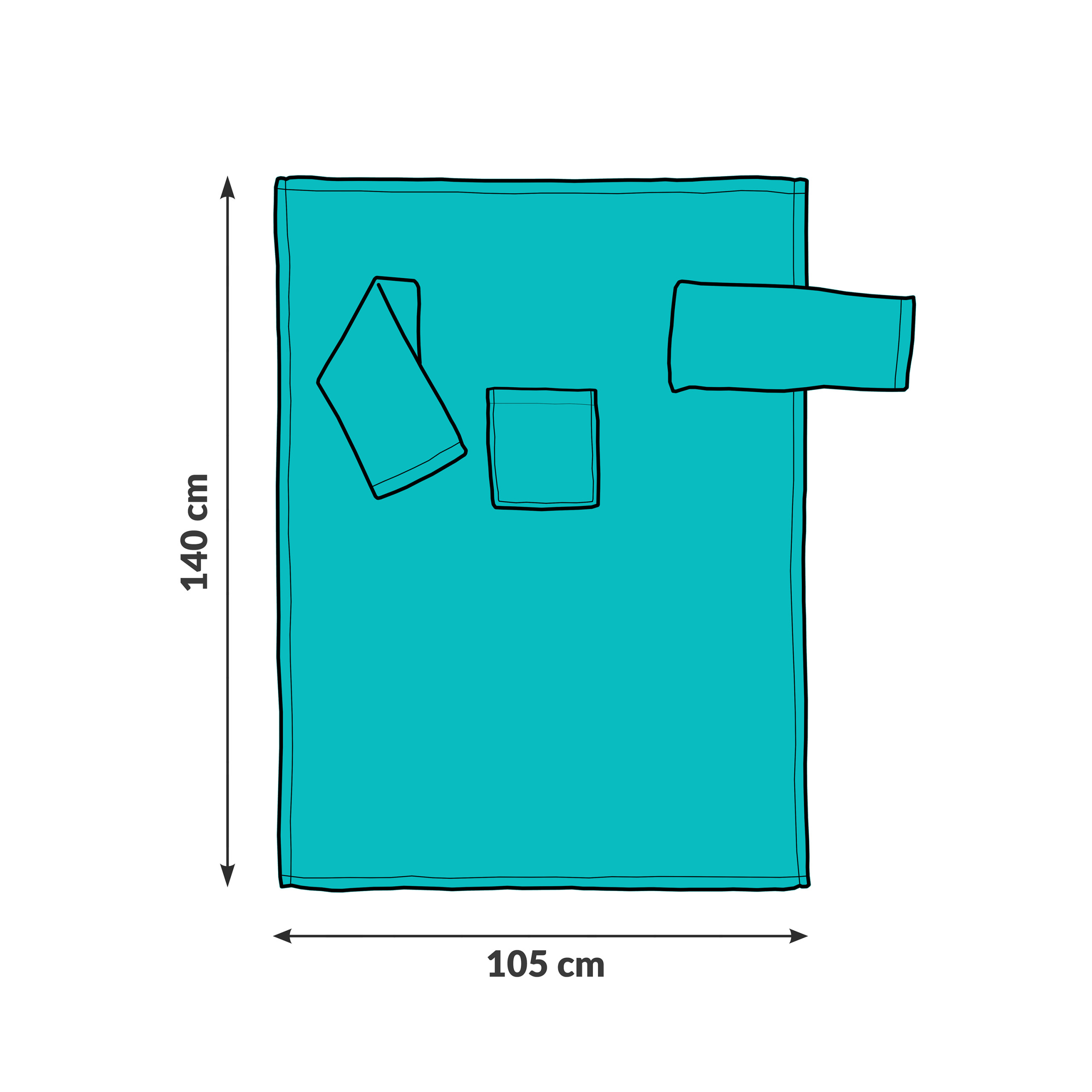 Material: polar (100% poliester). Dimensiuni: 140 cm (lungime), 105 cm (lățime), mărime universală. Gramajul materialului: 300 g/m2. Cusături foarte rezistente. Se poate spăla la temperatura de 30 grade Celsius. Ambalaj practic cu mâner - este ușor de depozitat.